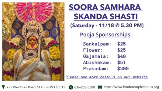 Continue ReadingSOORA SAMHARA SKANDA SHASTI @ 11/18, 5.30 PM