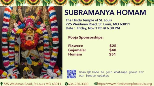 Continue ReadingSUBRAMANYA HOMAM @ 11/17, 6.30 PM