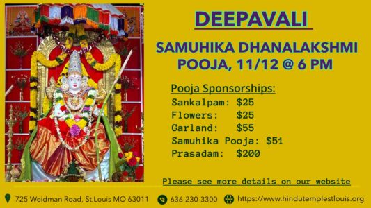 Continue ReadingDEEPAVALI (SAMUHIKA DHANALAKSHMI POOJA) @ 11/12, 6 PM